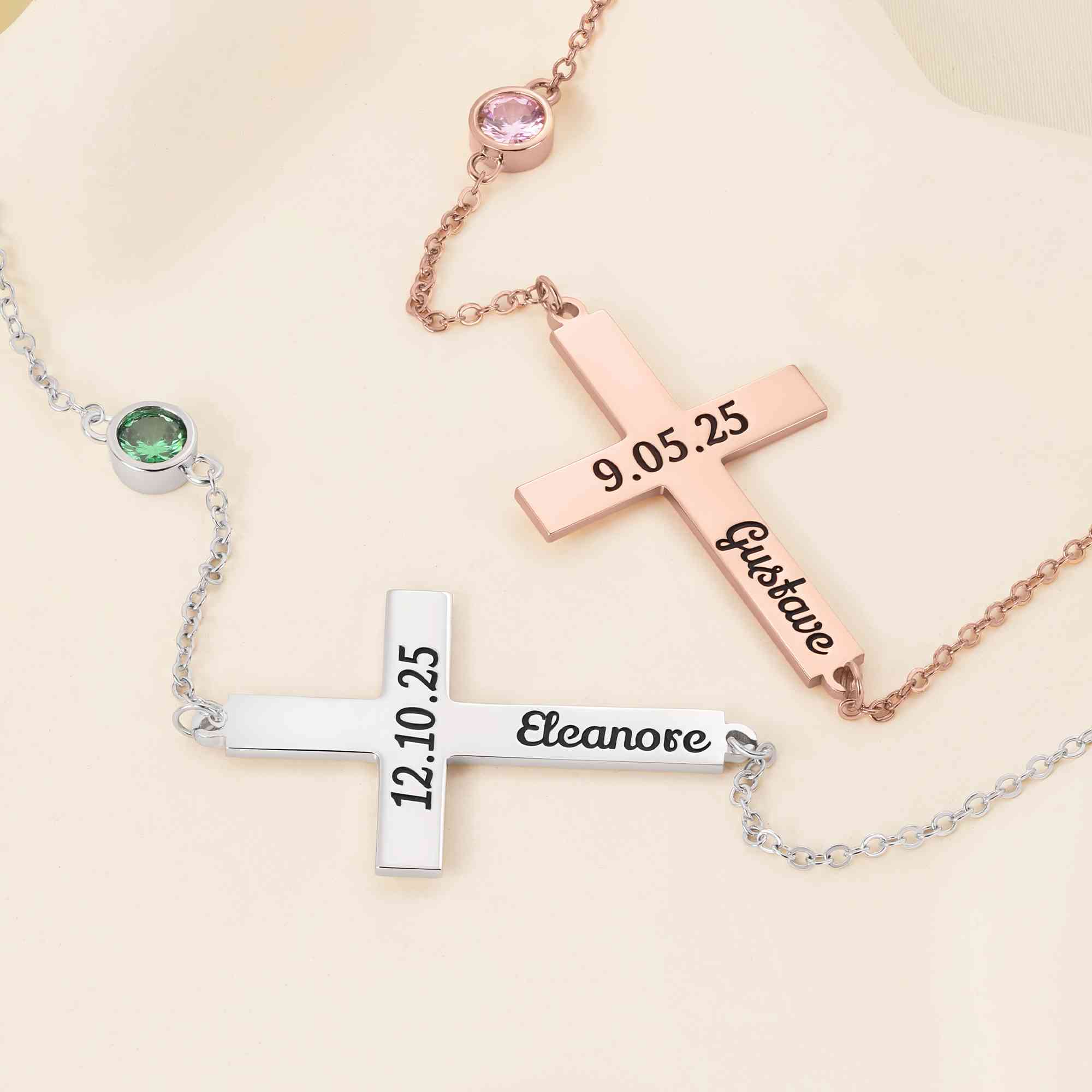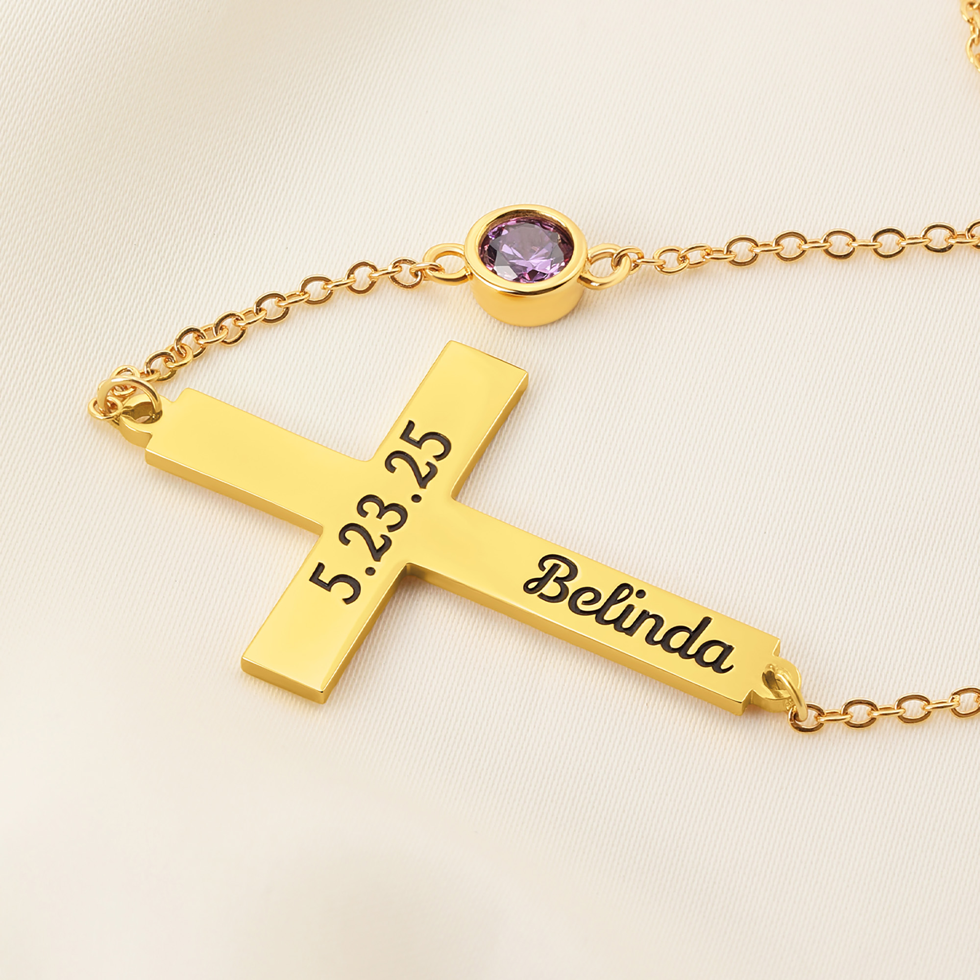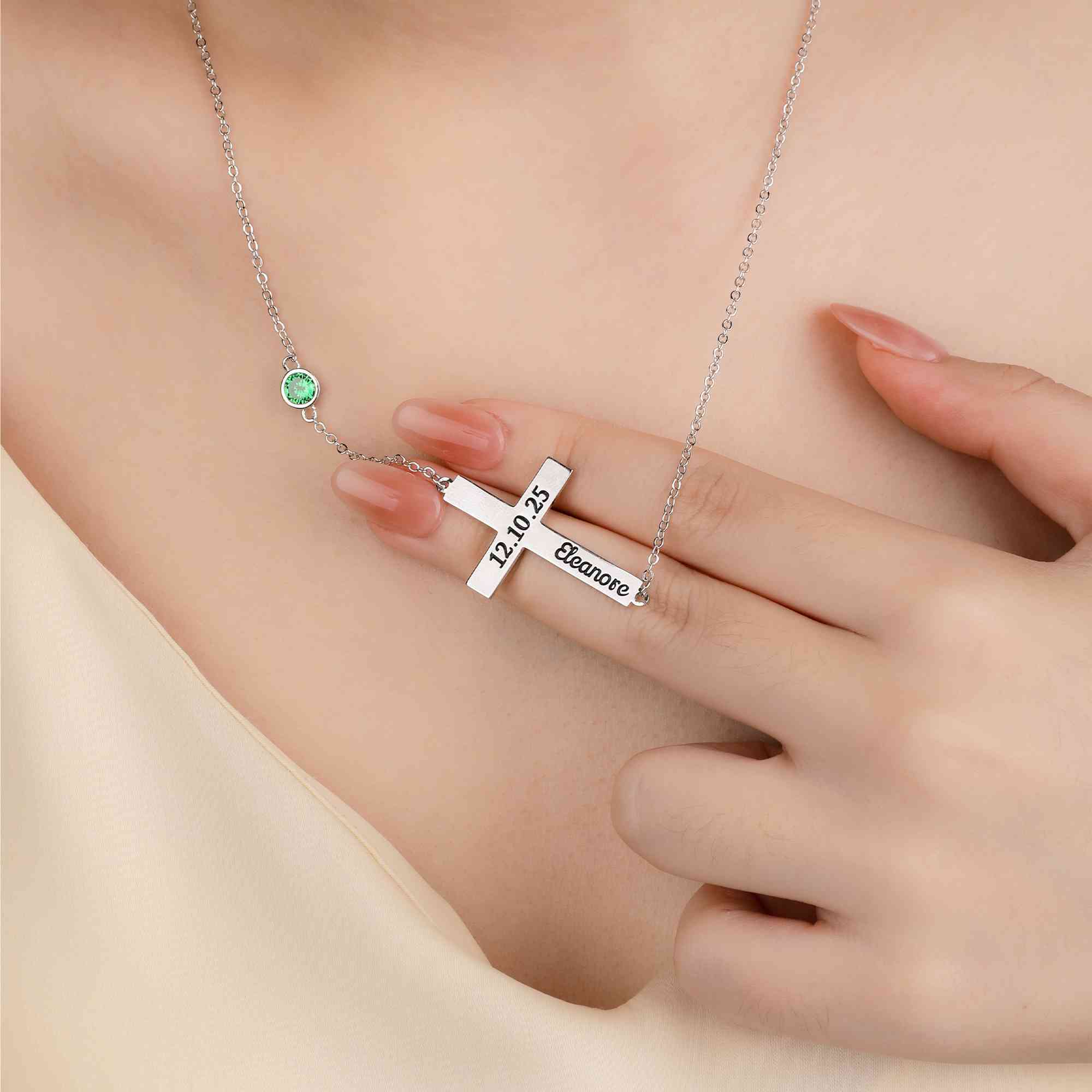 Elegant Cross Design - This necklace features a cross pendant paired with a sideways birthstone, symbolizing faith, protection, and blessings. Its modern yet meaningful design reflects a subtle expression of devotion and grace, perfect for everyday wear or special moments.
