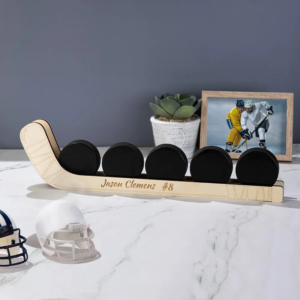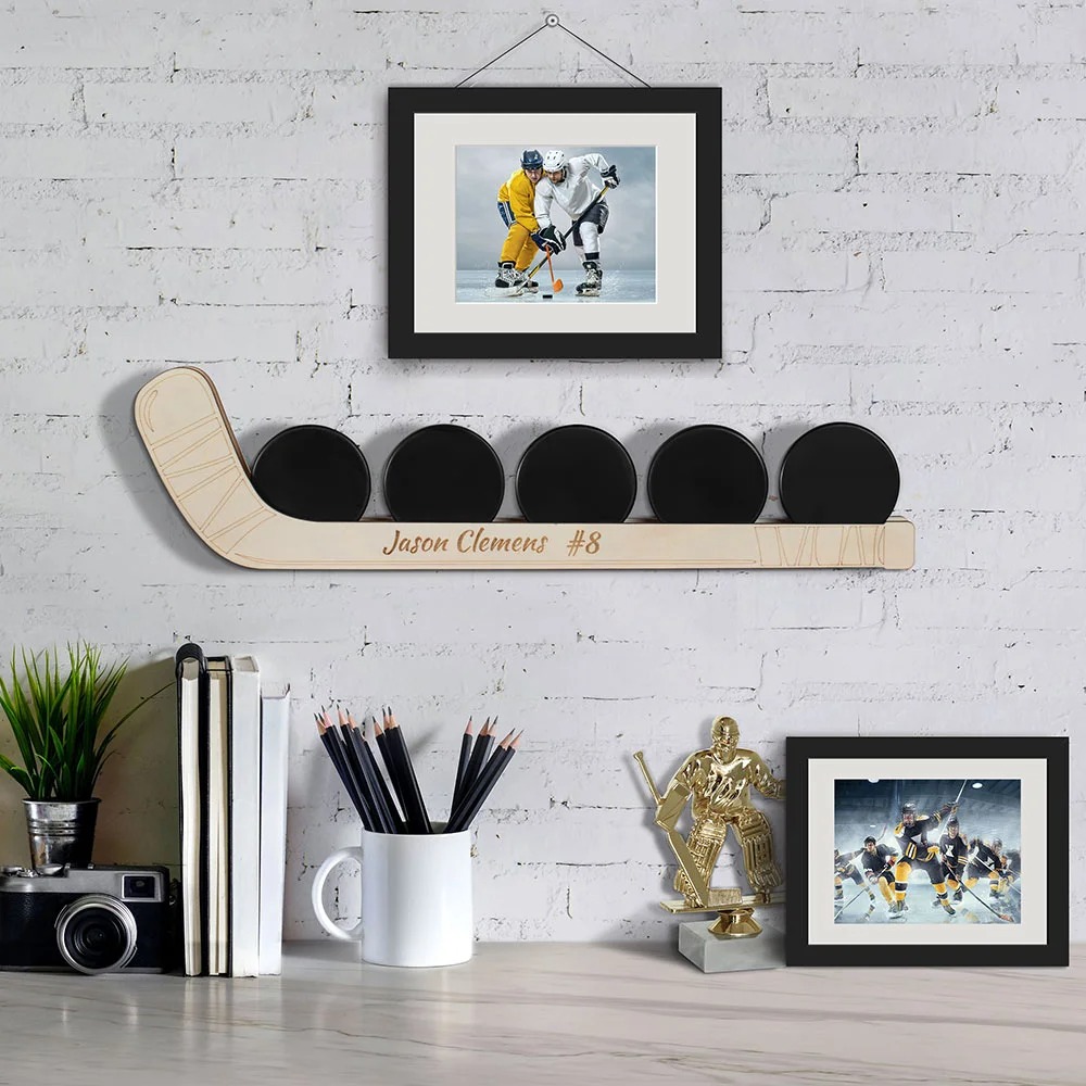Custom Hockey Puck Display Shelf, Hockey Stick Wooden Ornament with Name, Gifts for Hockey Players, Gift for Grandfather/Father/Him