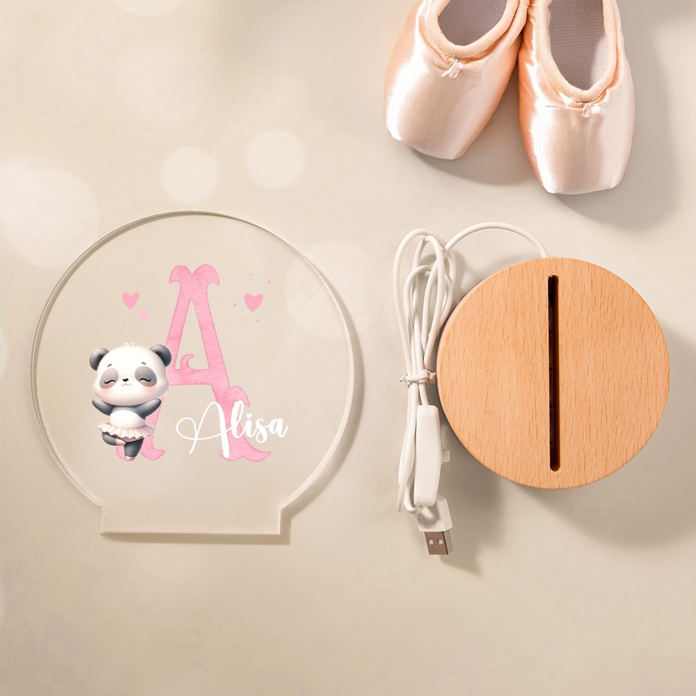 Custom Initial & Name Cartoon Animal Ballerina LED Night Light, Acrylic Night Lamp with Wooden Base, Home Decor, Birthday Gift for Girls/Ballet Lovers