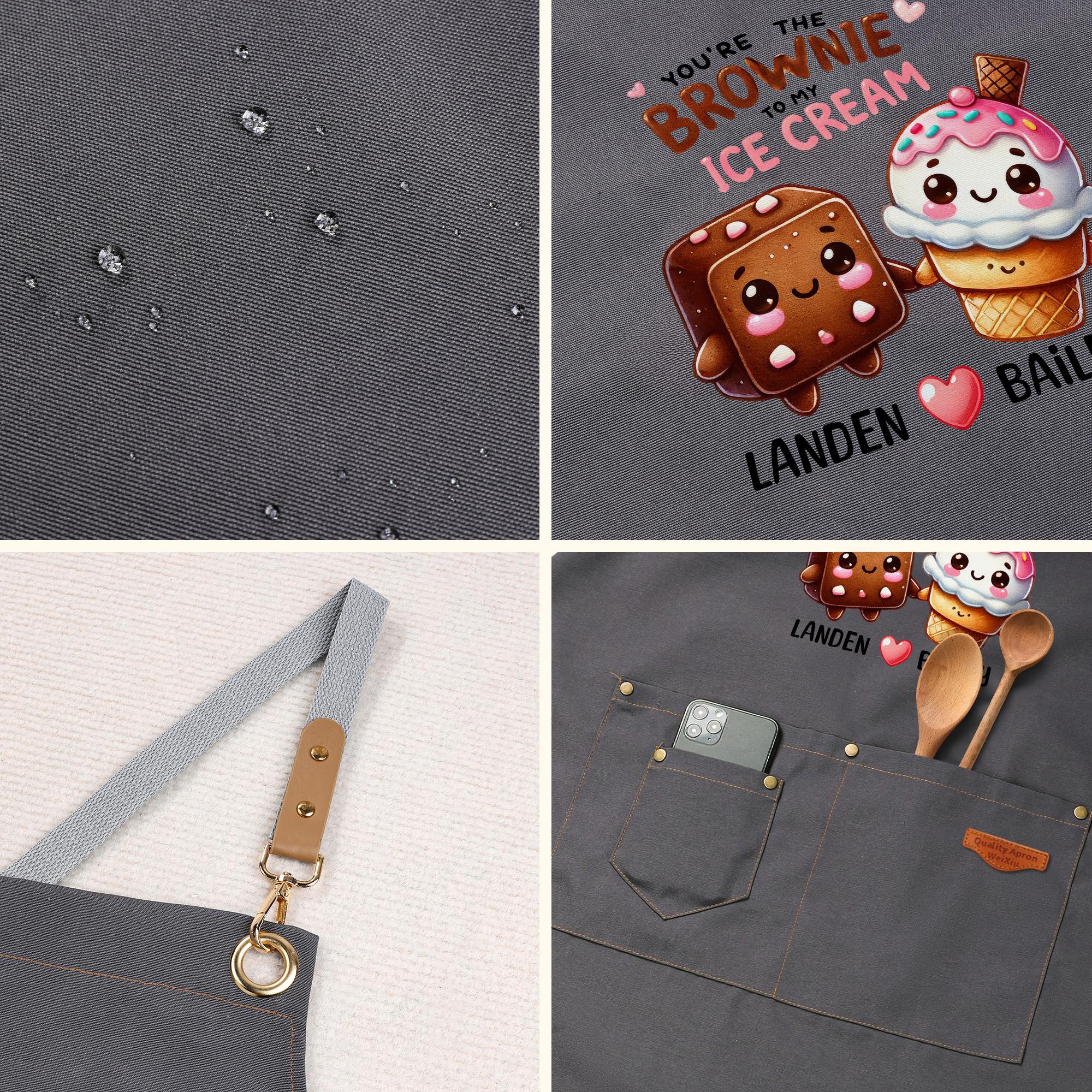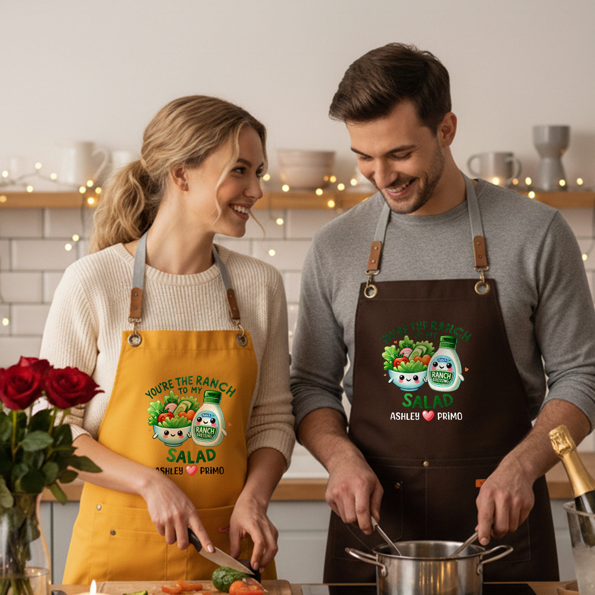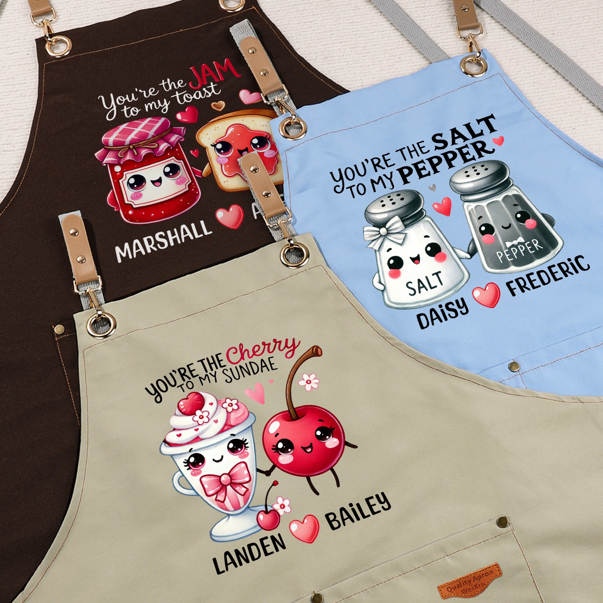 Custom Names Perfect Match Foodie Couple Apron, Multicolor Canvas Apron with Pockets & Adjustable Strap, Anniversary/Valentine's Day Gift for Couples